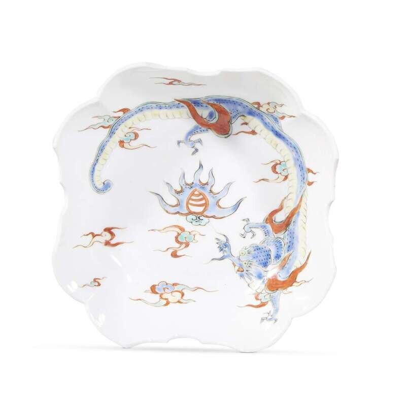 A Japanese Kakiemon palette-decorated porcelain shaped "Dragon" bowl edo period, 18th century