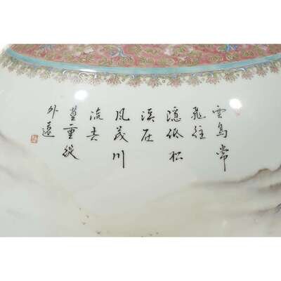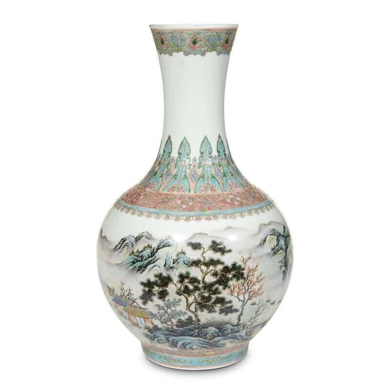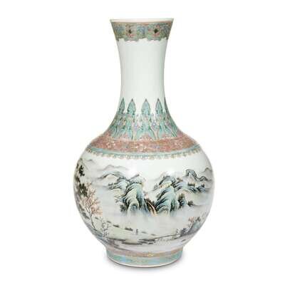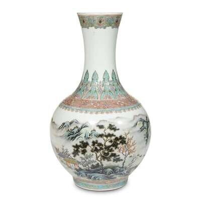 A Chinese famille rose-decorated "Landscape and Calligraphy" bottle vase jiangxi ciye gongsi, republic period