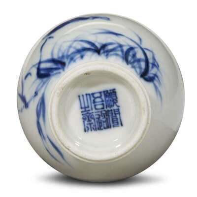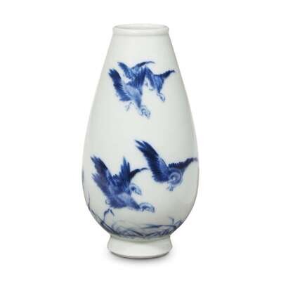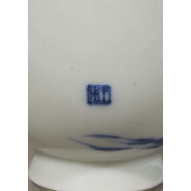 A small Chinese blue and white porcelain ovoid vase with seal of Wang Bu