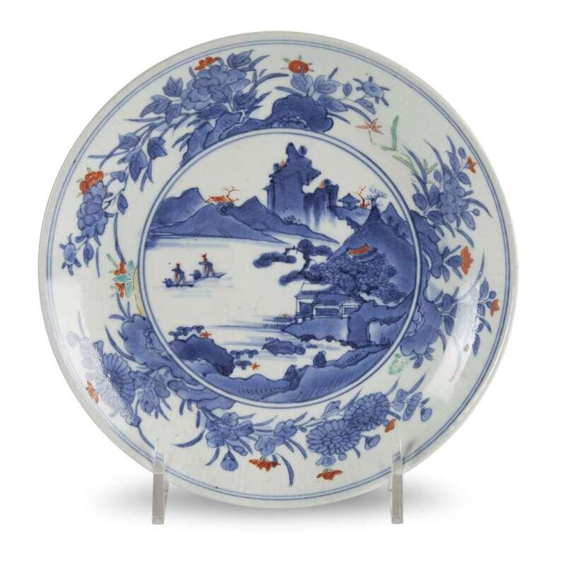 A Japanese enameled blue and white porcelain dish, Arita circa 1700