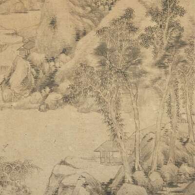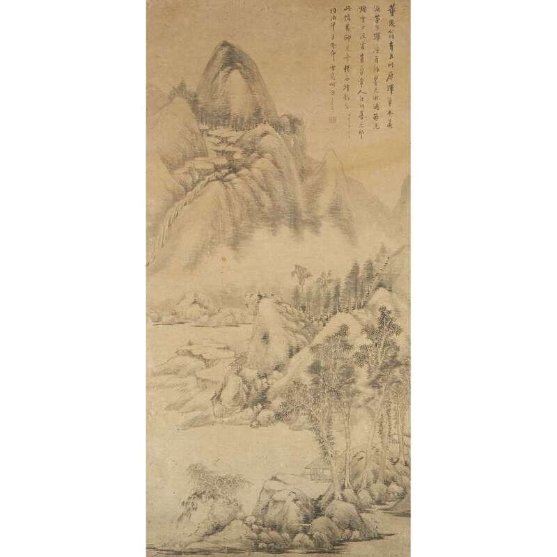 LANDSCAPE AFTER DONG QICHANG Ink on paper, inscribed and with one seal upper right, mounted as a hanging scroll.