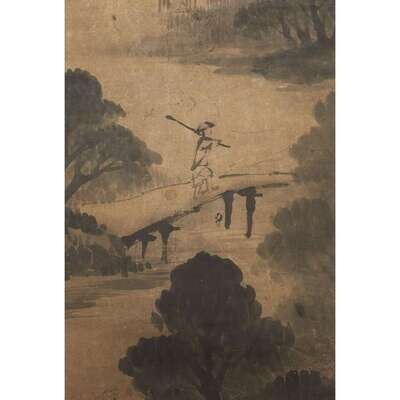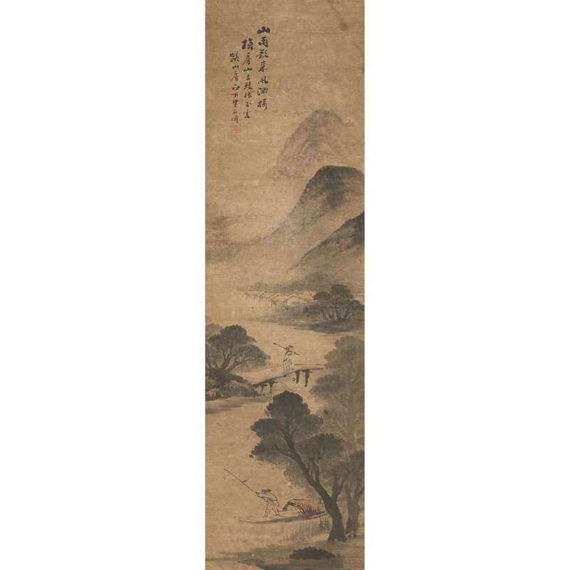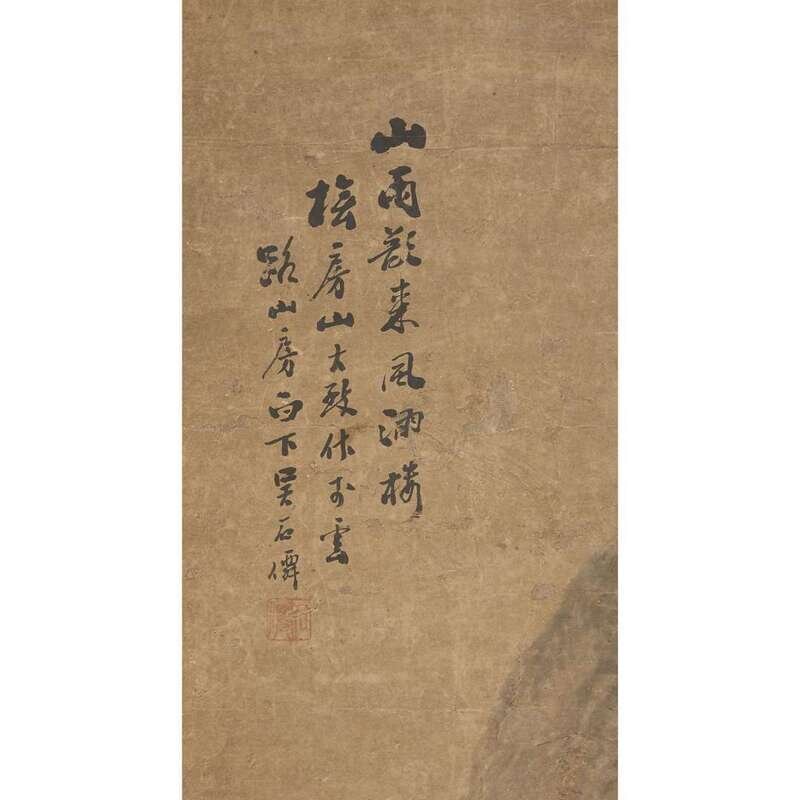 THE COMING MOUNTAIN STORM, THE WIND SWEEPING THROUGH THE TOWER Ink on paper, inscribed and with one seal to upper left, mounted as a hanging scroll.