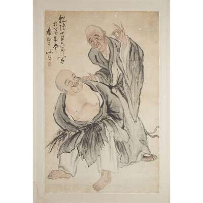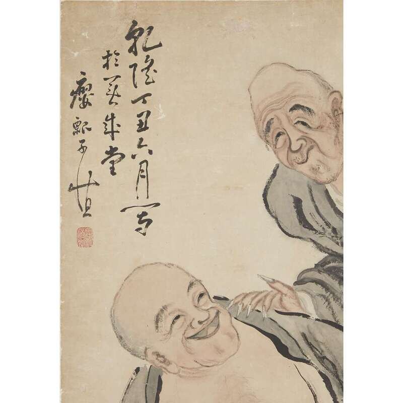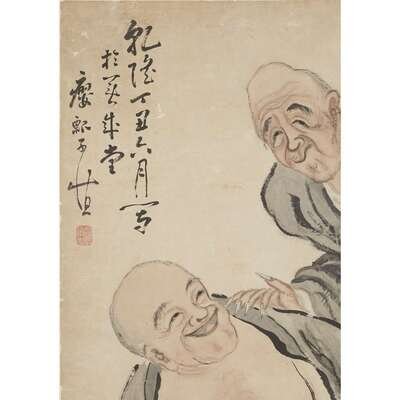 TWO LOHAN Ink and color on paper, inscribed and with one seal upper right, mounted in plexiglass.