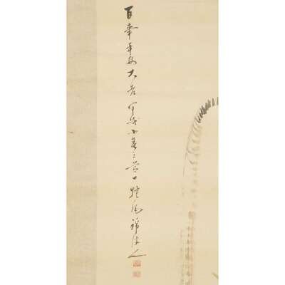 FLOWER BASKET Ink and color on silk, inscribed and with two seals to upper left and one to lower right, mounted as a hanging scroll.