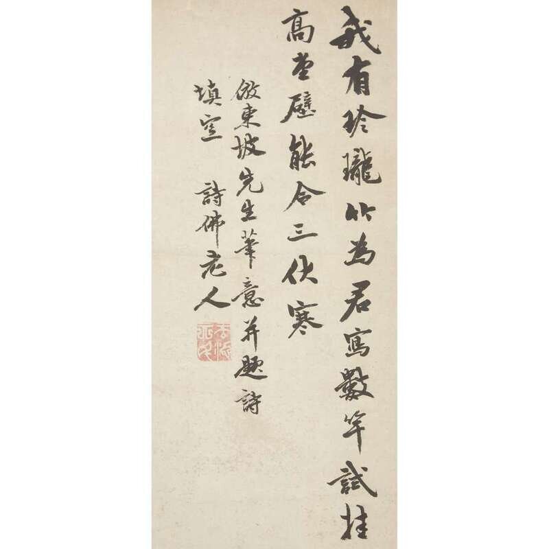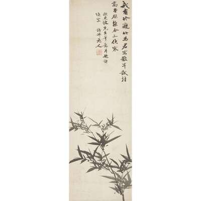 BAMBOO WITH POEM BY SU DONGPO Ink and color on paper, inscribed and with one seal upper right, mounted as a hanging scroll.