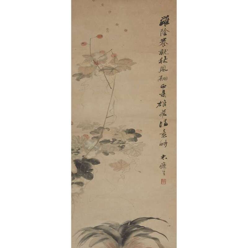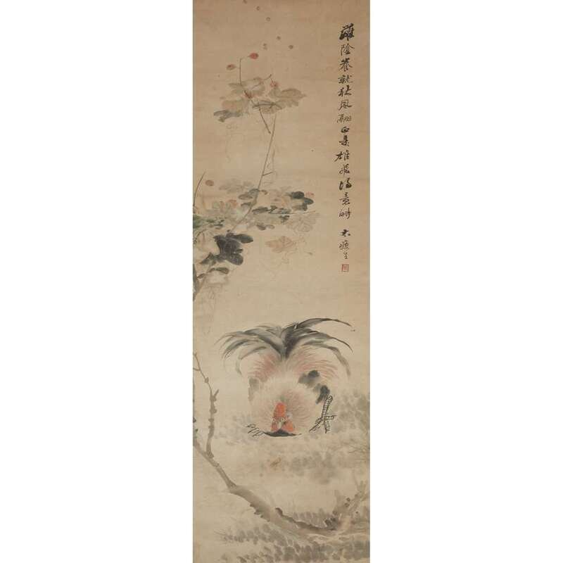 ROOSTER AND INSECT Ink and color on paper, inscribed and with one seal to upper right, mounted as a hanging scroll.