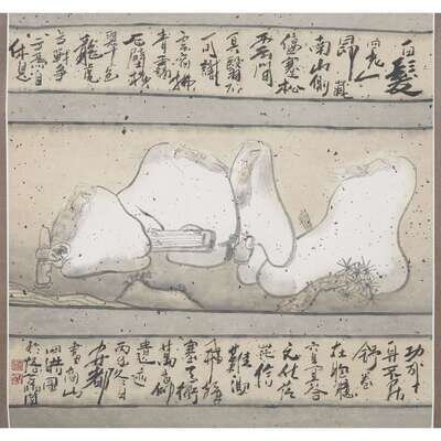 Ink and color on paper, inscribed to top and bottom sides, two seals to lower left, mounted as a hanging scroll sight H: 26 in., 66cm; W: 26 in., 66cm