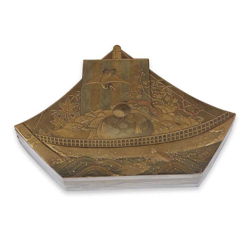 A finely-decorated Japanese lacquer "Treasure Boat" box and cover meiji period, 19th century