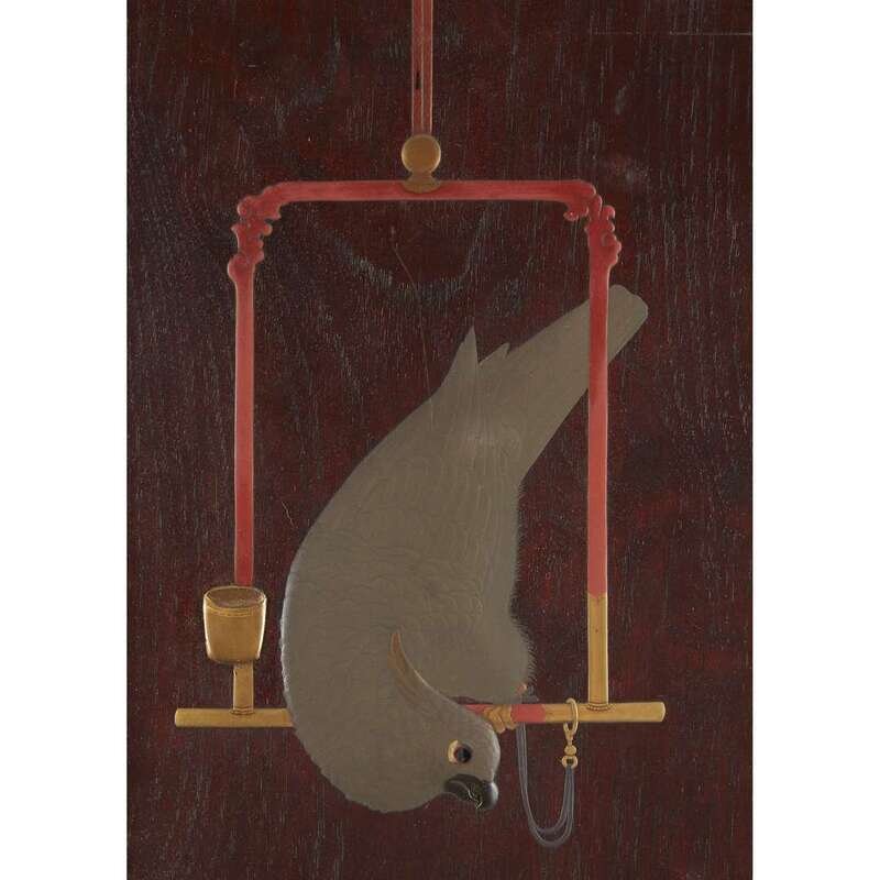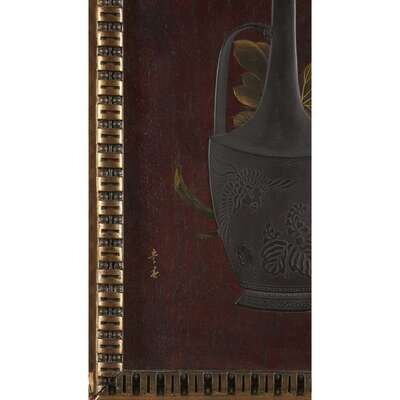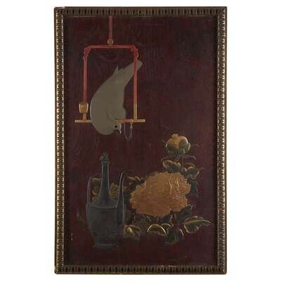 A Japanese lacquer "Cockatiel, Ewer, and Peonies" panel meiji period, late 19th century