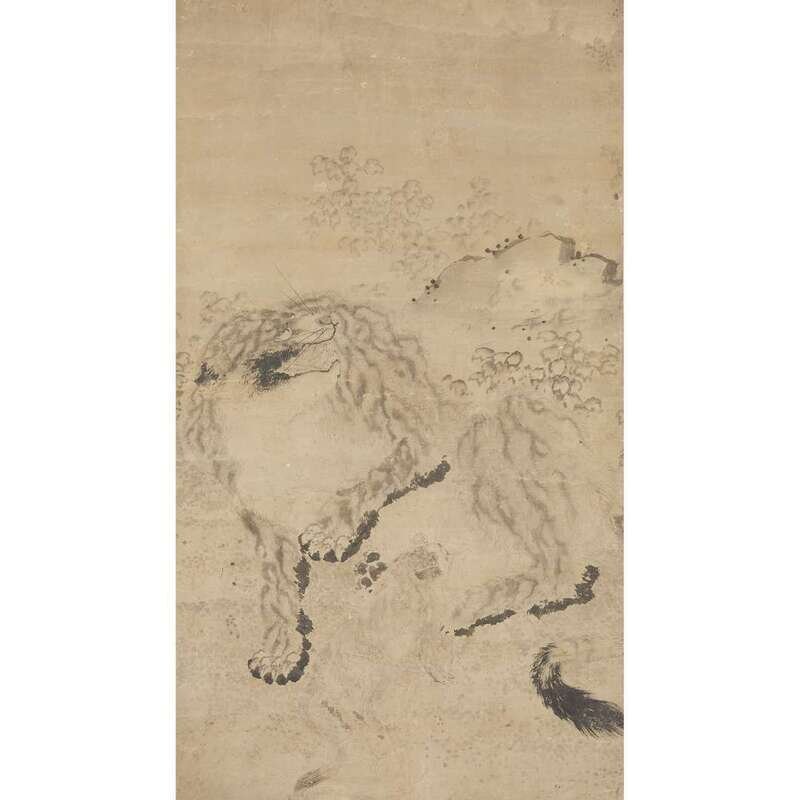 TIGER AND CUB Ink on paper, mounted as a hanging scroll.