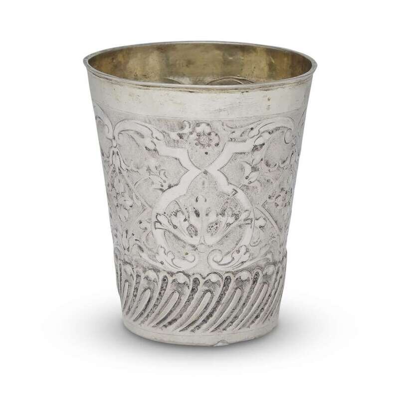 A Polish parcel-gilt silver beaker maker's mark IS, probably Breslau, first quarter 18th century