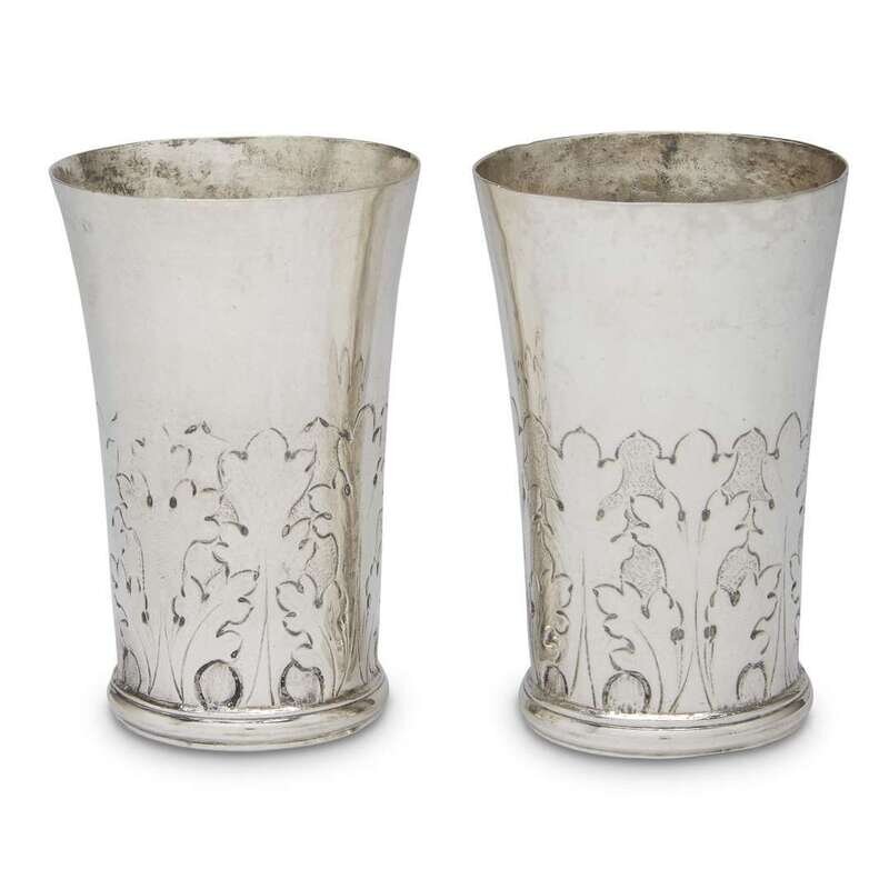 A pair of Polish silver beakers maker's mark DW, Breslau, first quarter 18th century