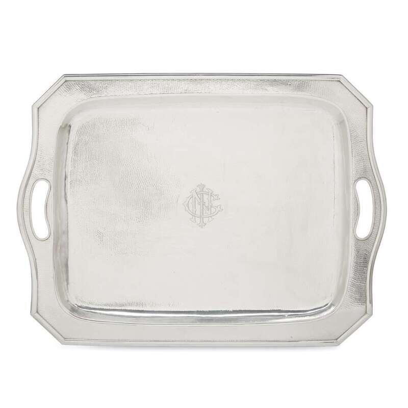 A Chinese export silver rectangular two handled tea tray with Chinese character marks to underside, early 20th century