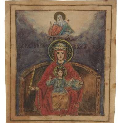 An Imperial watercolor icon of the Derzhavnaya Mother of God Grand Duchess Ksenia Alexandrovna, circa 1928