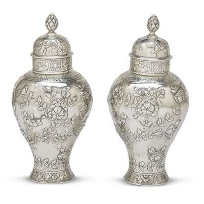 A pair of George III sterling silver repoussé ginger jars Samuel Hennell, London, 1811