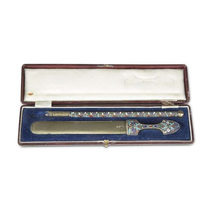 A Russian silver-gilt and cloisonné enamel desk set likely Alexander Vasiliev Domnin, St. Petersburg, before 1899