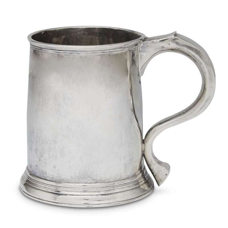 A George I Britannia silver mug marks heavily rubbed, likely London, 1723