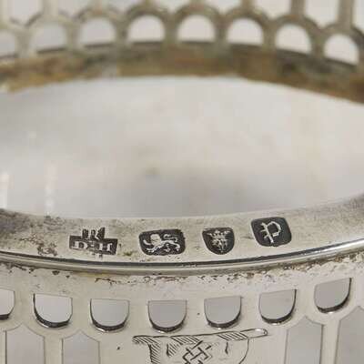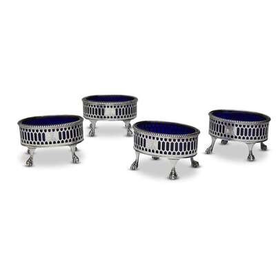A set of four George III sterling silver salt cellars with cobalt glass liners David & Robert Hennell, London, 1770
