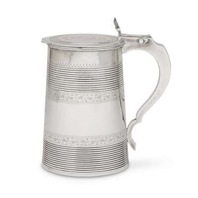 A large George III sterling silver cylindrical armorial tankard John Robins, London, 1784