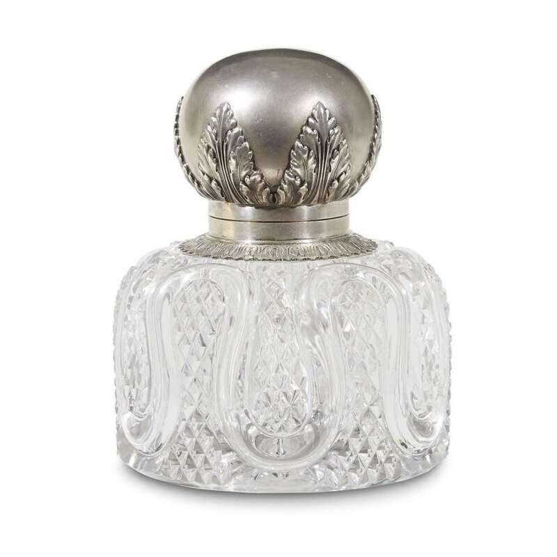 A Fabergé silver-mounted cut lead-crystal inkwell marked K. Fabergé with imperial warrant, Moscow, before 1899