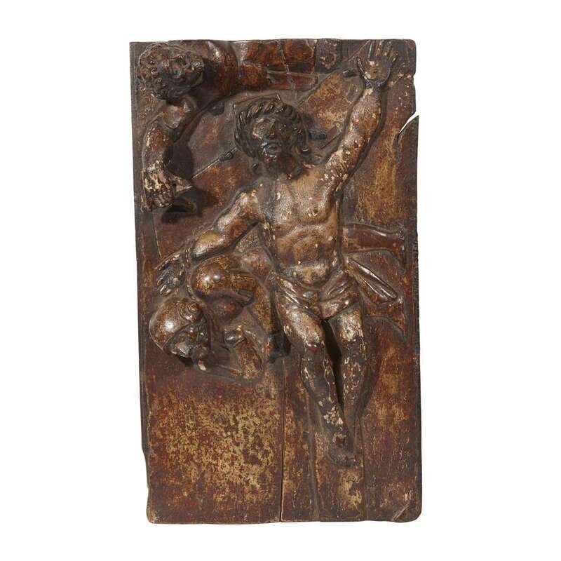A carved wood panel of the deposition from the cross likely 17th century
