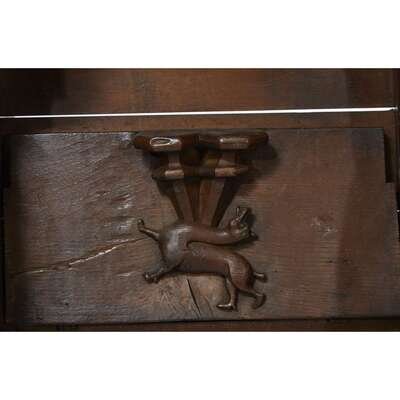 A Charles VI carved oak choir stall French, largely circa 1480-1500, with repairs