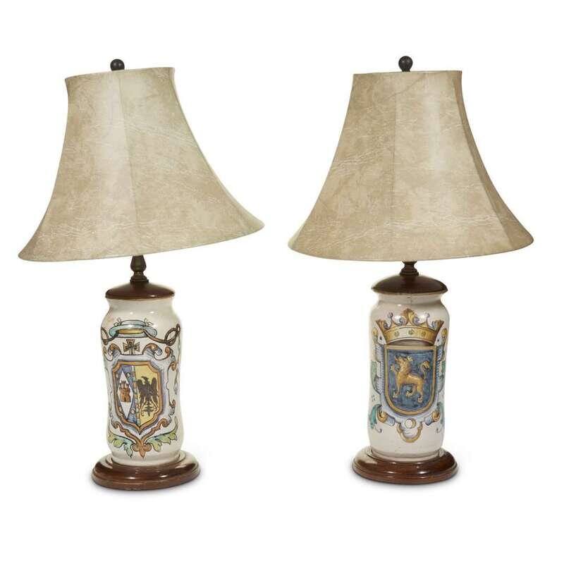 A pair of Italian Maiolica vase-form lamps likely 19th century
