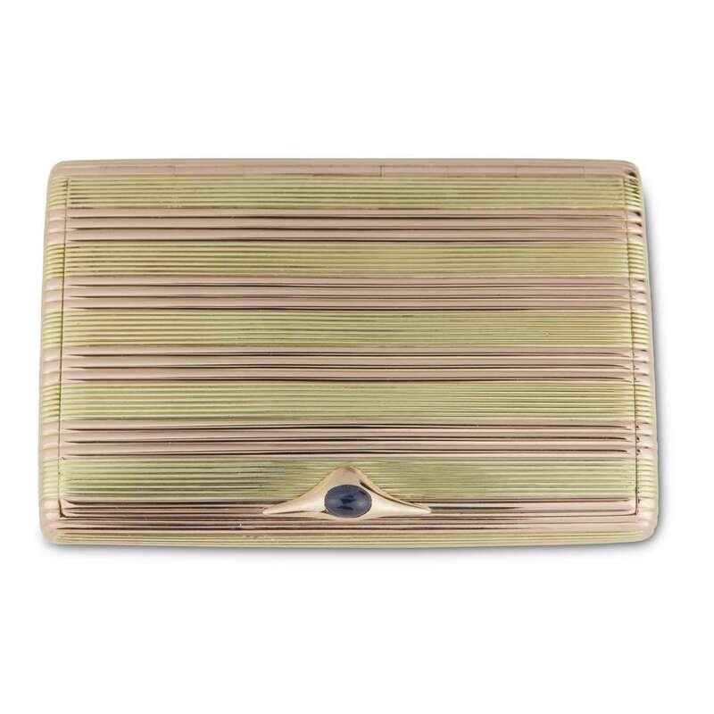 A Fabergé two-color gold gem-set case marked K. Fabergé with imperial warrant, Moscow, 1902