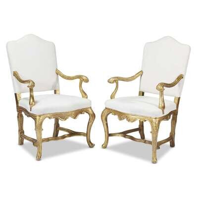 A pair of Venetian Rococo giltwood armchairs mid 18th century