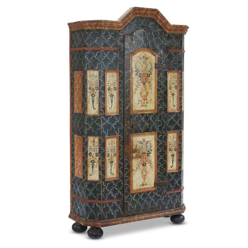 A fine Northern European painted armoire likely Swiss, dated 1834
