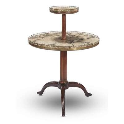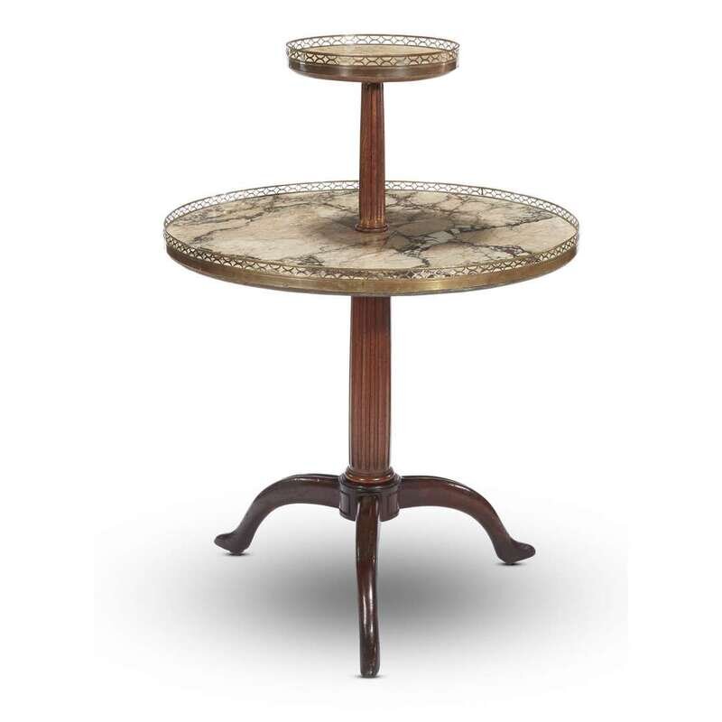 A George III giltmetal mounted marble two-tier mahogany dumbwaiter circa 1800