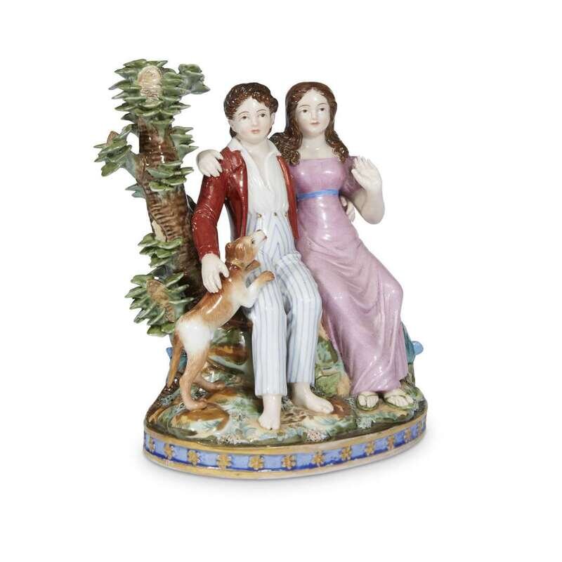 A Russian porcelain group "Paul, Virginie and The Dog Fidèle" Popov Manufactory, Corbunovo, 1830-1850