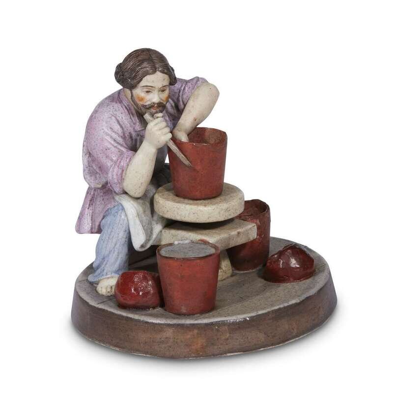 A Russian porcelain group "Peasant Ceramicist Throwing a Pot" Ikonnikov Manufactory, Elizavetino, 1865-1866