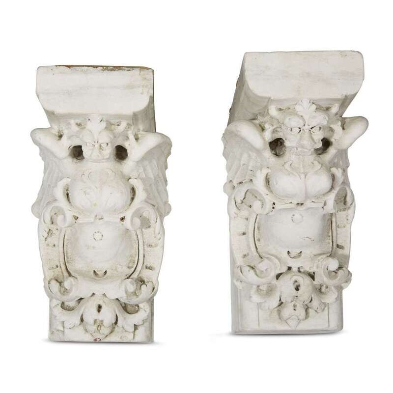 A pair of Italian marble corbels possibly 17th century