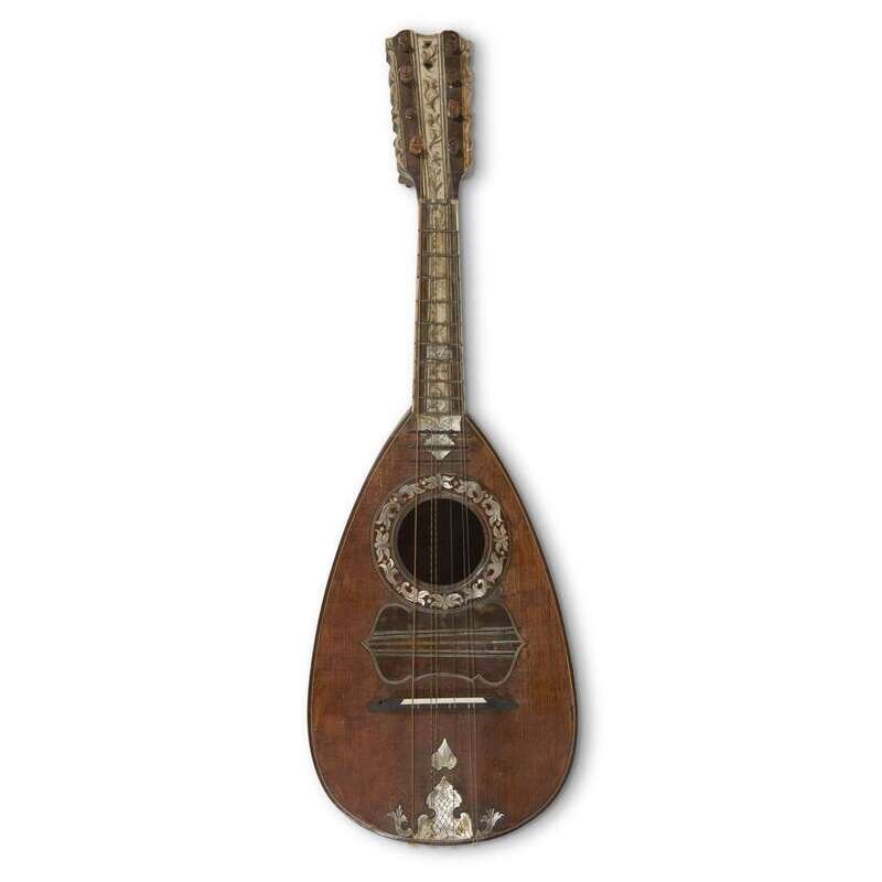 A Neapolitan bone, mother-of-pearl, and specimen wood inlaid spruce and Italian cypress mandolin attributed to the Vinaccia family, circa 1750-60
