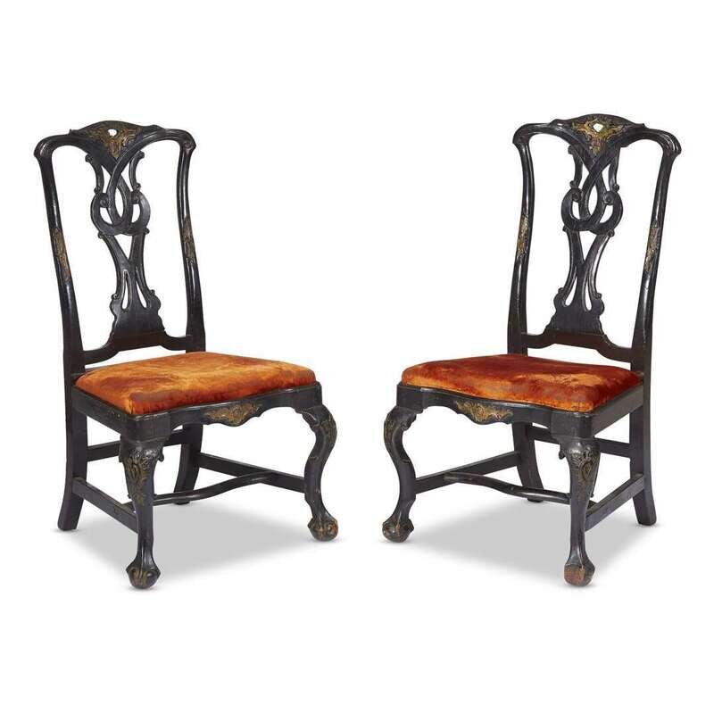 A pair of Portuguese Rococo parcel-gilt and ebonized side chairs 18th century