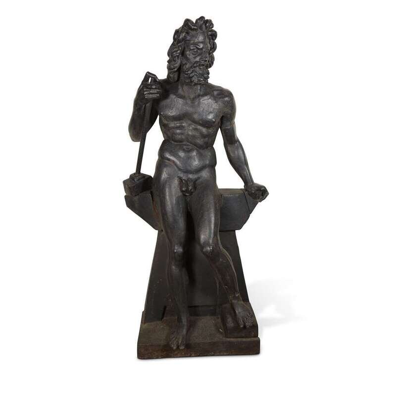 A black painted cast iron figure of Vulcan late 19th/early 20th century