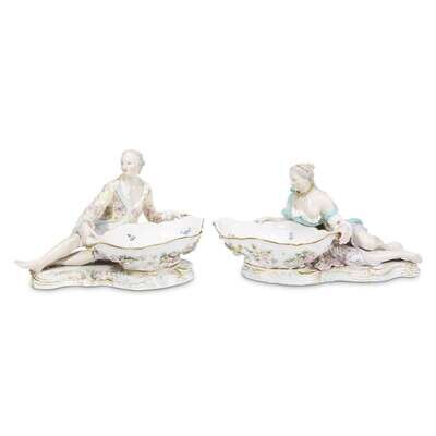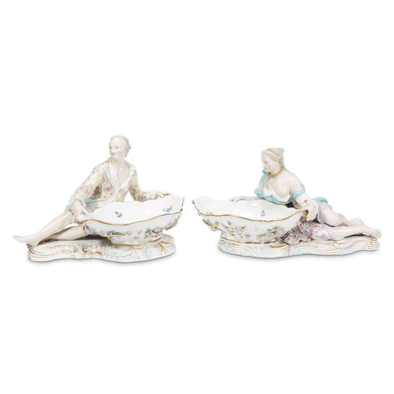 A pair of Meissen figural sweetmeat dishes 1815-1860