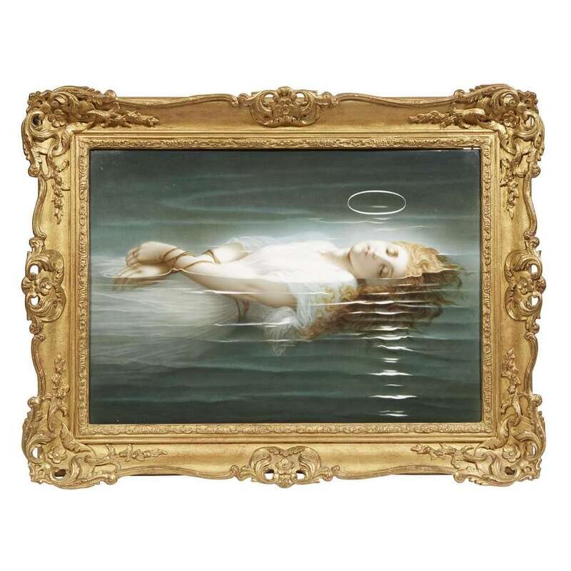 Exceptionally finely painted, the verso signed "P. Delaroche/Martyre chretienne/cop. F. Wagner Wien," and with blue bindenschild mark and impressed scepter mark over "K.P.M.," "H," and "W," and with further incised dimensions "20 1/2 - 14 3/4;" housed in carved gesso and giltwood frame.