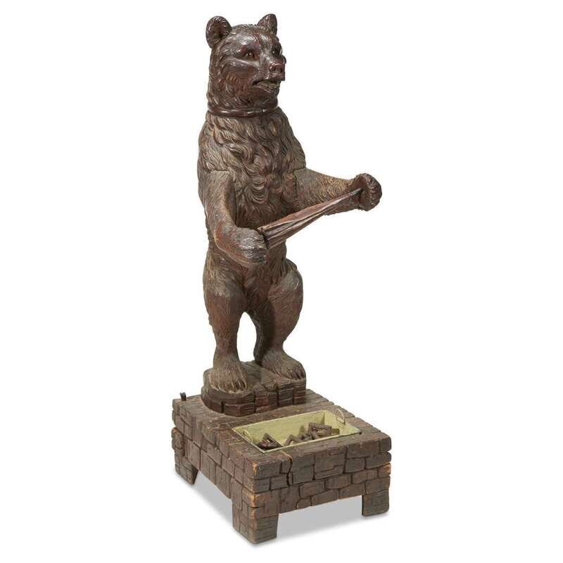 A Black Forest carved walnut bear-form umbrella stand late 19th century