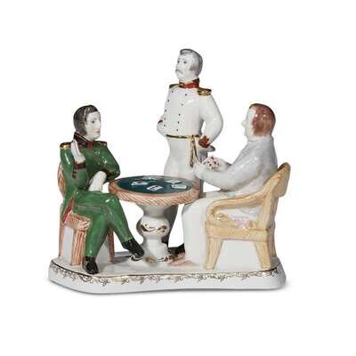 A Russian porcelain group "The Card Players from 'Pikovaya Dama' (The Queen of Spades)" First of May Factory, Leningrad, 1990s