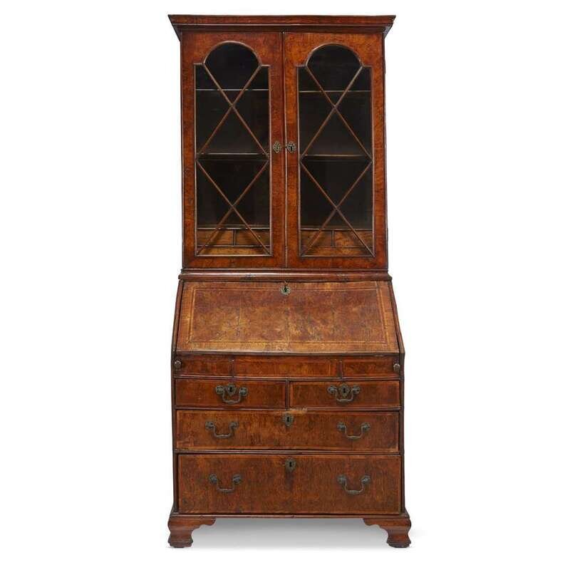 A George II banded burl and figured walnut secretary desk second quarter 18th century