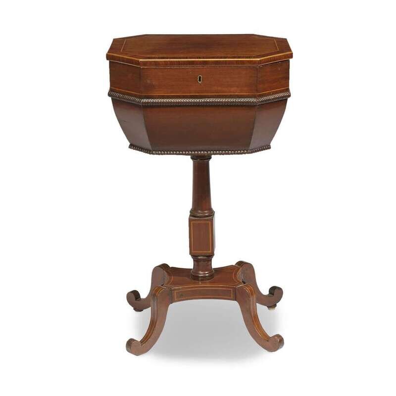 A Regency rosewood and satinwood inlaid mahogany sewing stand circa 1820