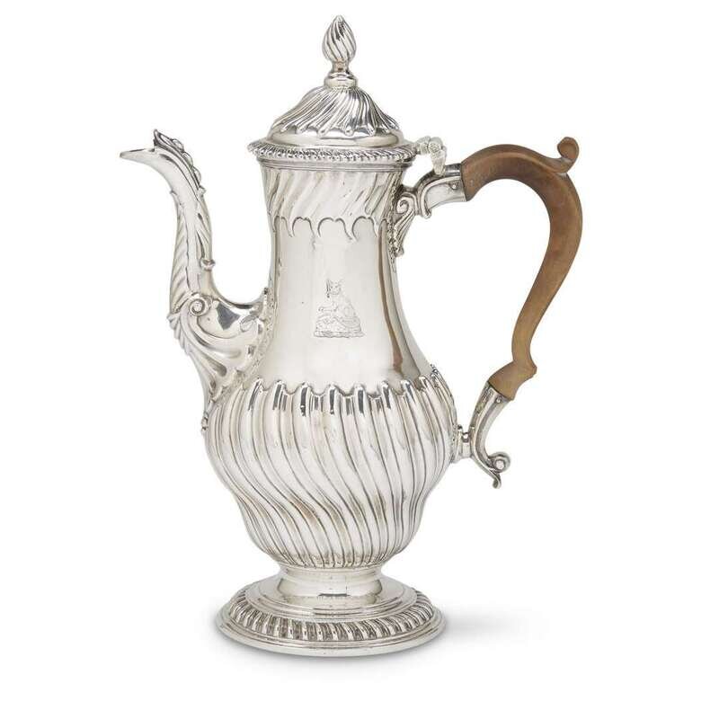 A George III sterling silver coffeepot indistinct maker's mark *G, London, 1771-72