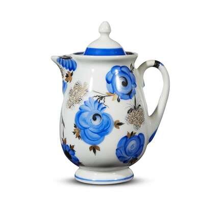 A Soviet porcelain hot water pot "Blue Flowers" Lomonosov State Porcelain Manufactory, Leningrad, circa 1930