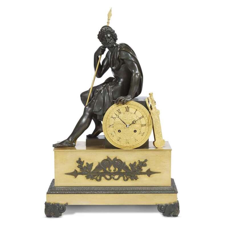 An Empire ormolu and patinated bronze figural mantel clock of Odysseus Lesieur à Paris, the case possibly Etienne Blavet, circa 1810-20