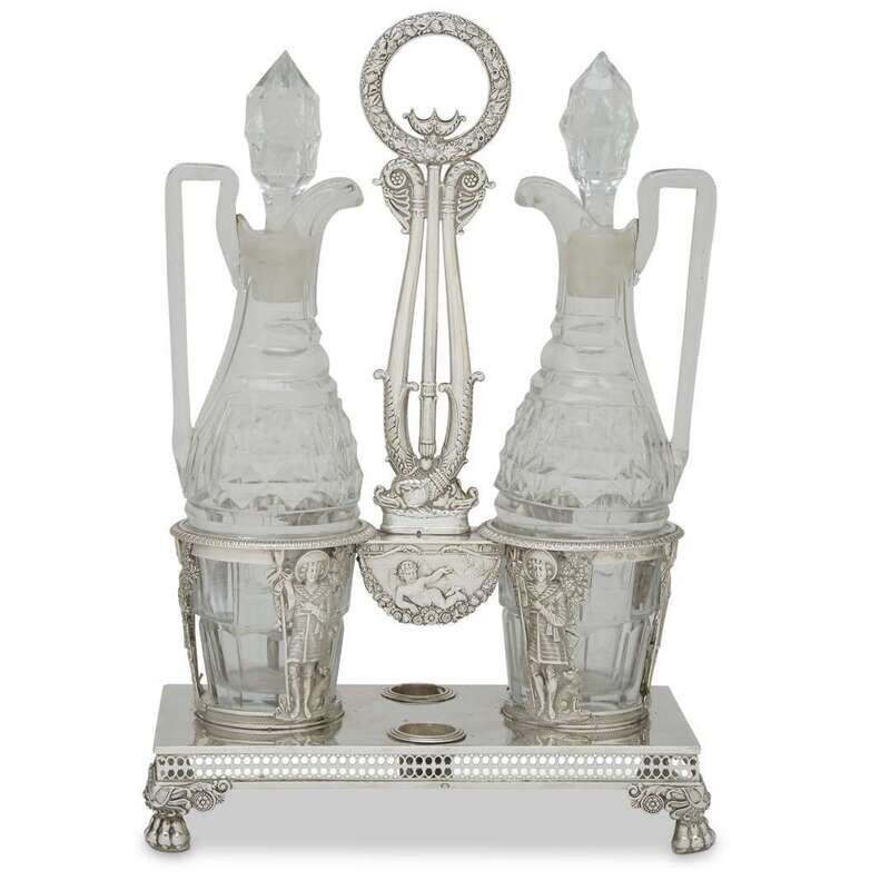 A Charles X silver cruet stand maker's mark SJD, Paris, circa 1820-30