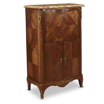 A Louis XV ormolu-mounted acajou and kingwood parquetry petit secrétaire à abattant Pierre Migeon II (French, 1701-1758), mid 18th century
