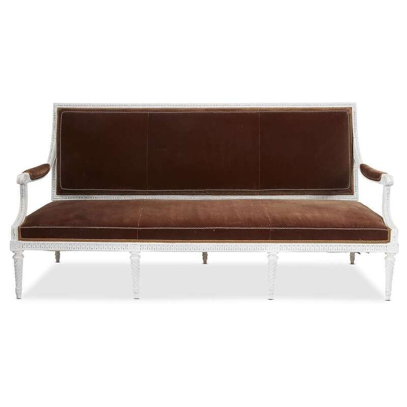 The Meinig Family Collection.A Louis XVI white-painted settee upholstered in chocolate silk velvet circa 1780