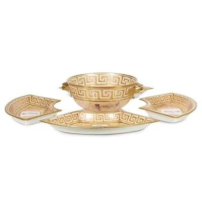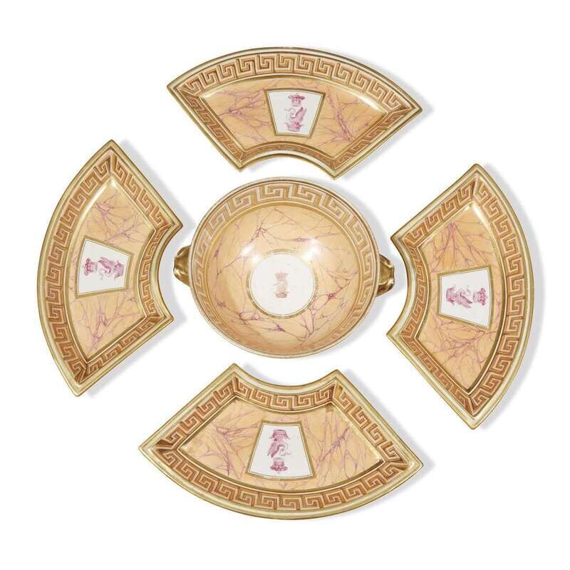A Samson parcel-gilt and faux-marbre porcelain pseudo-armorial sweetmeat set mid to late 19th century